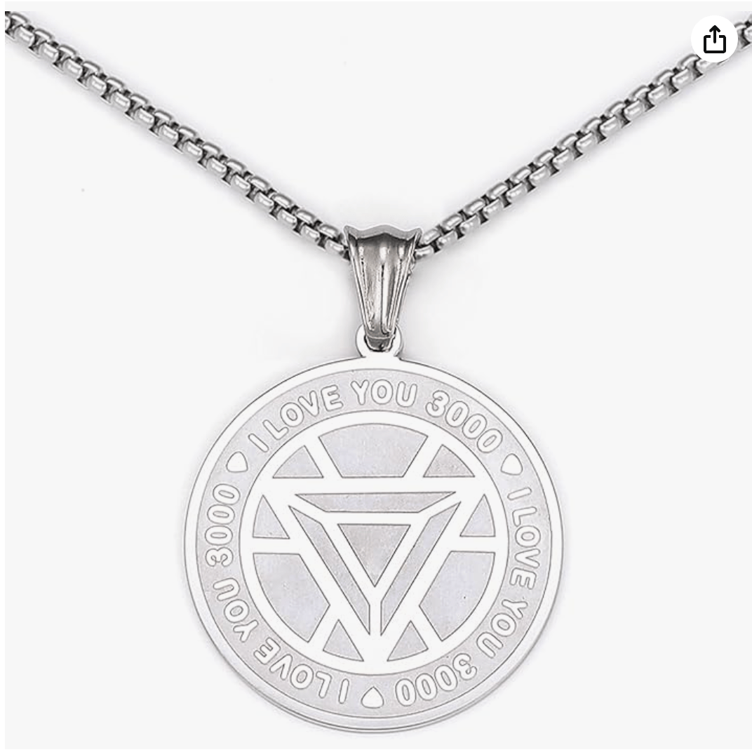 La primera película de Marvel que mi esposo y yo vimos juntos fue Iron Man, así que, ¿qué mejor manera de comenzar que con el Collar I Love You 3000? El collar está hecho de acero inoxidable y tiene un cierre de langosta.