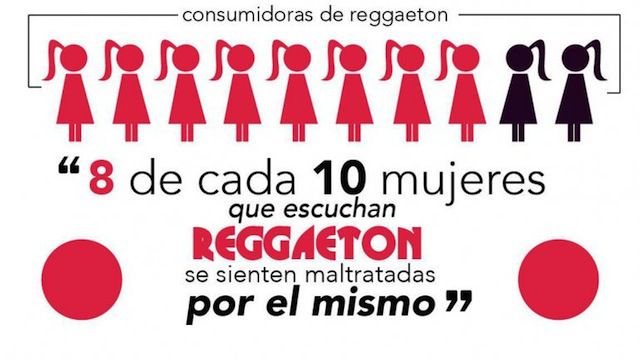 Entre las más desoladoras plagas que ha conocido la humanidad durante los últimos 100 años, las peores canciones de reggaetón han destrozado a tantas generaciones con la promesa de sonidos dulzones, oros, bambas y swag, que son incontables los damnificados que han quedado irrecuperables para siempre. Sin embargo, la agresiva campaña viral de la fotógrafo Lyneyl Ibáñez ha ido todavía más lejos que el incordio que puedan provocar los pegajosos sonidos de este estilo musical, y junto a un grupo de estudiantes Diseño de la Universidad Jorge Tadeo Lozano ha analizado las canciones de Daddy Yankee, Tego Calderón y Arcángel y otros, para demostrar que el reggaetón es música degradante para la mujer y el género humano.