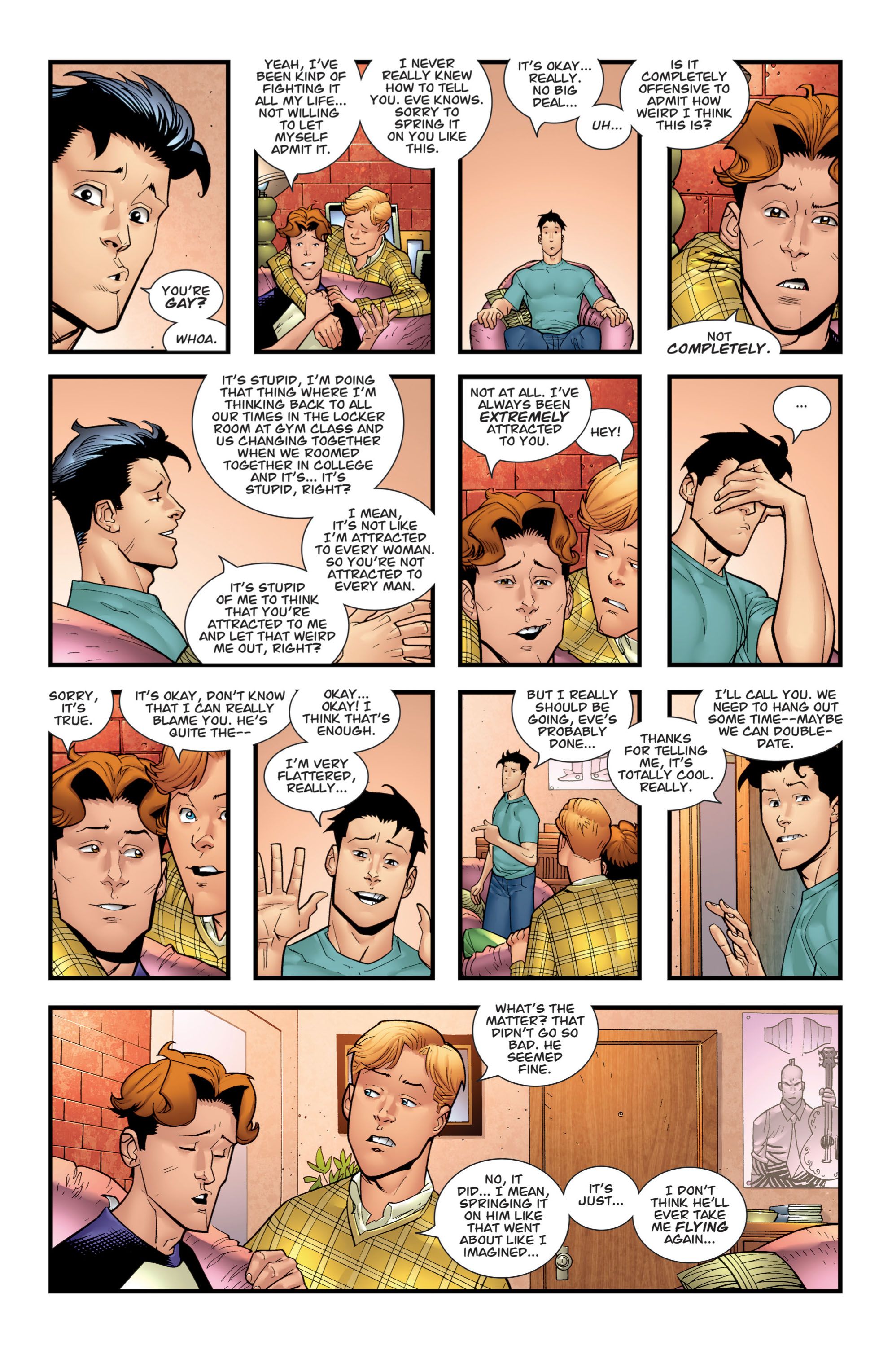 En respuesta, Mark defiende al equipo y señala que Omni-Man vino a ayudar. William se burla de Mark por gustar de un héroe tan sobredimensionado como Omni-Man, aunque admite que el héroe es "sexy y todo". Pronto, William se disculpa por el giro que tomó la conversación, diciendo: "Lo siento. Vale, cosas claras". El chiste aquí parece ser que a Mark le incomoda que William hable así de su padre, aunque William sólo piensa que es porque Mark es heterosexual. Así, William deja claro que es marica en el primer episodio de Invencible.