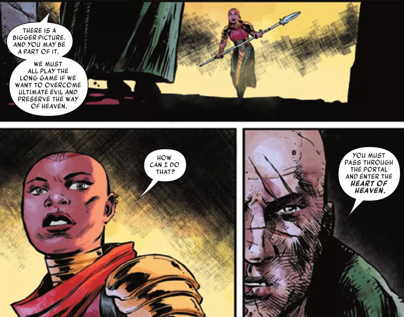Puede que incluso vincule a Okoye -y a Wakanda- con las Siete Ciudades de una forma única, dándole muchas razones para estar involucrada en futuras historias que impliquen el lado místico del kung-fu del Universo Marvel. Incluso podría ser, como predice el Príncipe de los Huérfanos, la clave para restaurar el equilibrio del Chi en el Universo Marvel.