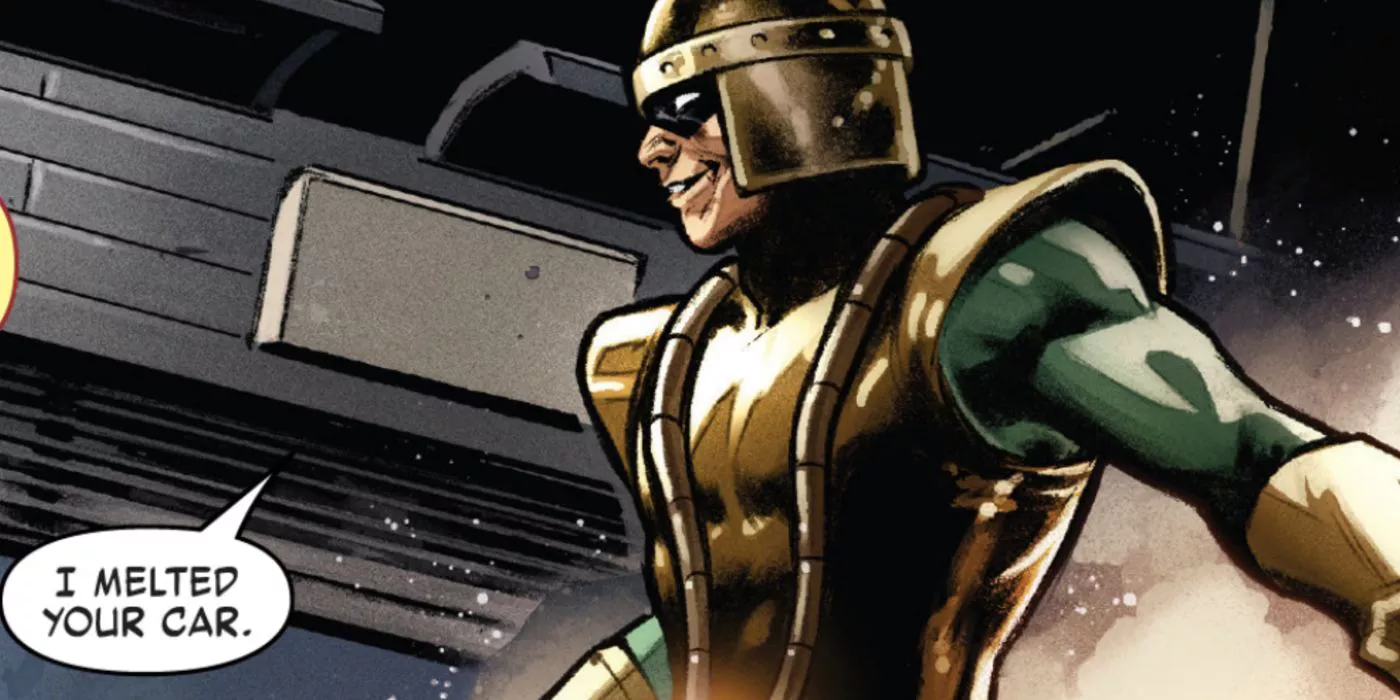 El primer antagonista de esta lista demostró ser más una molestia que una verdadera amenaza. Después de soportar una agotadora serie de misiones mientras se ganaba el desprecio y la ira de un público general desagradecido, Tony estaba al límite de su ingenio. Volviendo a su garaje personal, Tony descubrió que había sido roto en su viejo enemigo Melter, con uno de sus preciados coches completamente fundido.