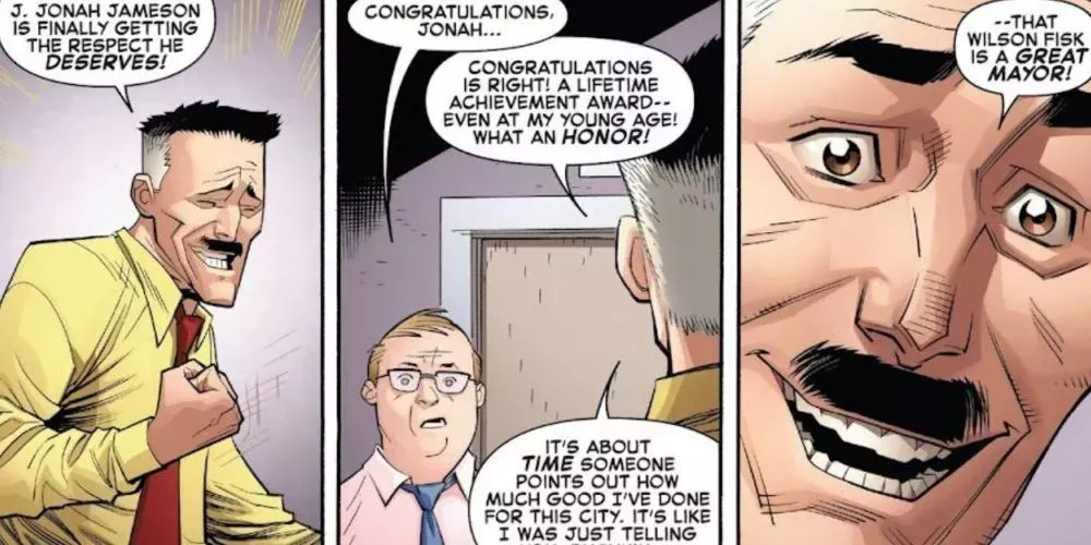Durante su etapa como alcalde, J. Jonah Jameson se enfureció cuando su añorado padre, JJ Jameson Sr., que es posiblemente uno de los peores padres de los cómics, se presentó en su oficina. Cuando Spiderman llegó también, Jameson se puso tan nervioso que le costaba respirar.