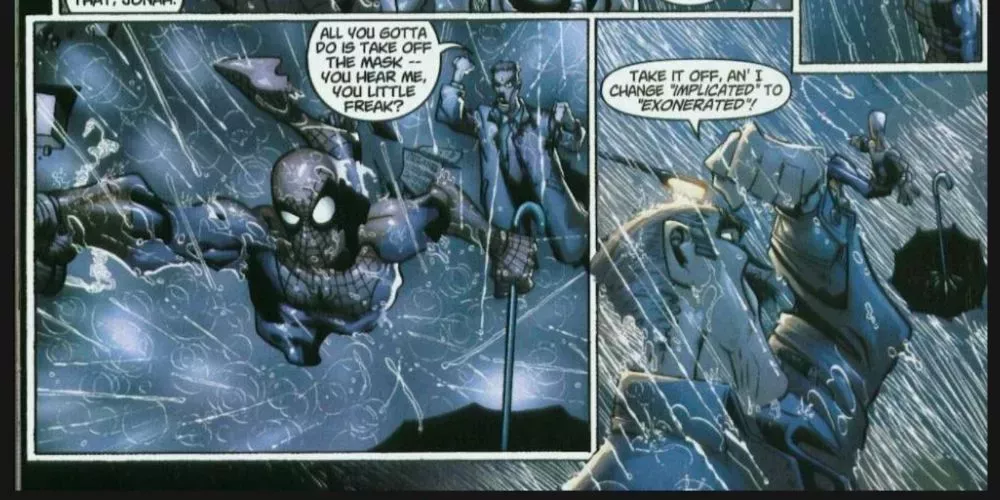 A lo largo de la historia de los cómics de Spider-Man, el mayor deseo de Jameson siempre ha sido ver la cara que hay detrás de la máscara. La desesperación de Jameson le empuja al chantaje, y aunque la oferta que hace es sensata, no consigue su deseo porque la brújula moral de Spider-Man no le permite hacer semejante trato.