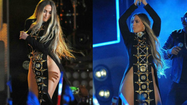 La estrella del pop y del cine Jennifer Lopez celebró por anticipado el 4 de julio, Día de la Independencia de Estados Unidos, en Nueva York, con un show al lado del grupo de salsa cubano Gente de Zona, con un espectáculo donde la atención se la llevó su revelador vestido. Jennifer Lopez sin bragas en pleno concierto.