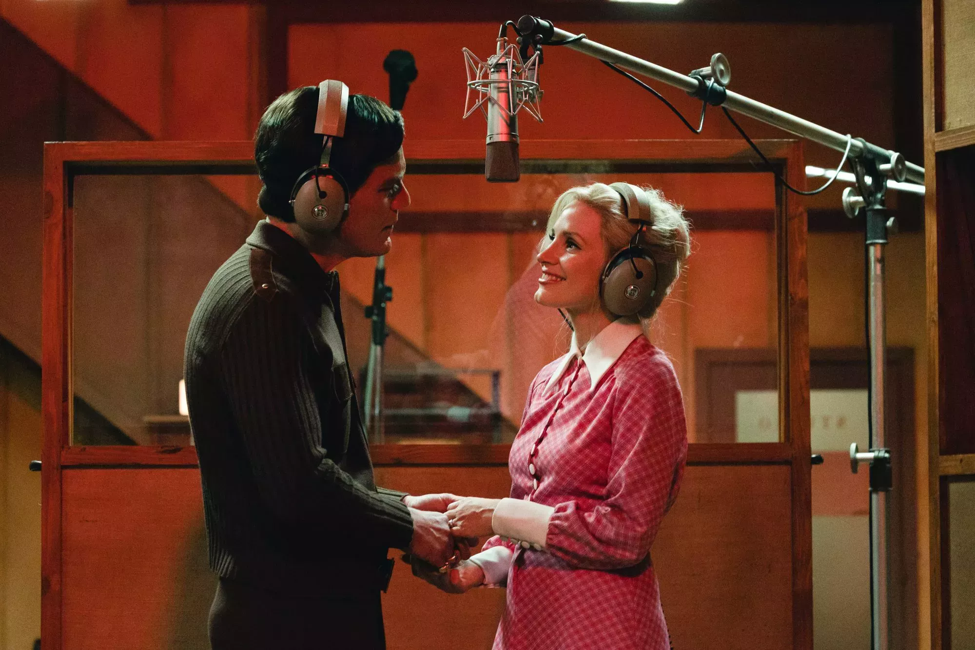 Jessica, estuviste muy bien como Tammy Faye Bakker (en su papel ganador del Oscar en "Los ojos de Tammy Faye"), y ahí estás tratando con alguien que tiene quizás más espíritu que dotes naturales como vocalista. Aquí, se trata de alguien que realmente es conocido como un buen cantante. ¿Fue capaz de desprenderse inmediatamente de todo lo que hizo para que Tammy Faye funcionara? ¿O te diste cuenta de que algo de este último papel se te pegaba, un poco?