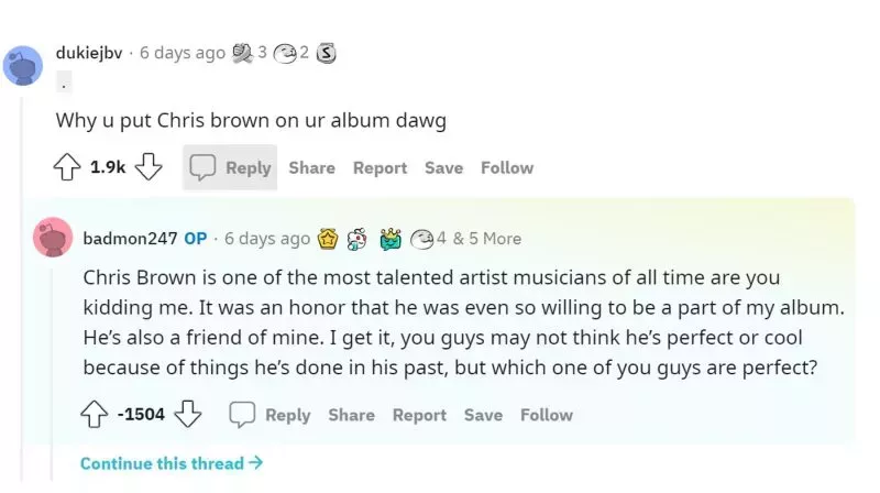 Su elección de trabajar con Brown en la canción fue cuestionada inicialmente durante un AMA de Reddit la semana pasada, cuando un usuario escribió: "¿Por qué poner a Chris Brown en su álbum dawg."En respuesta al comentario, Joey dijo que era "un honor" tener a Brown en el álbum, y añadió: "Lo entiendo, puede que no penséis que es perfecto o genial por las cosas que ha hecho en su pasado, pero ¿quién de vosotros es perfecto?".