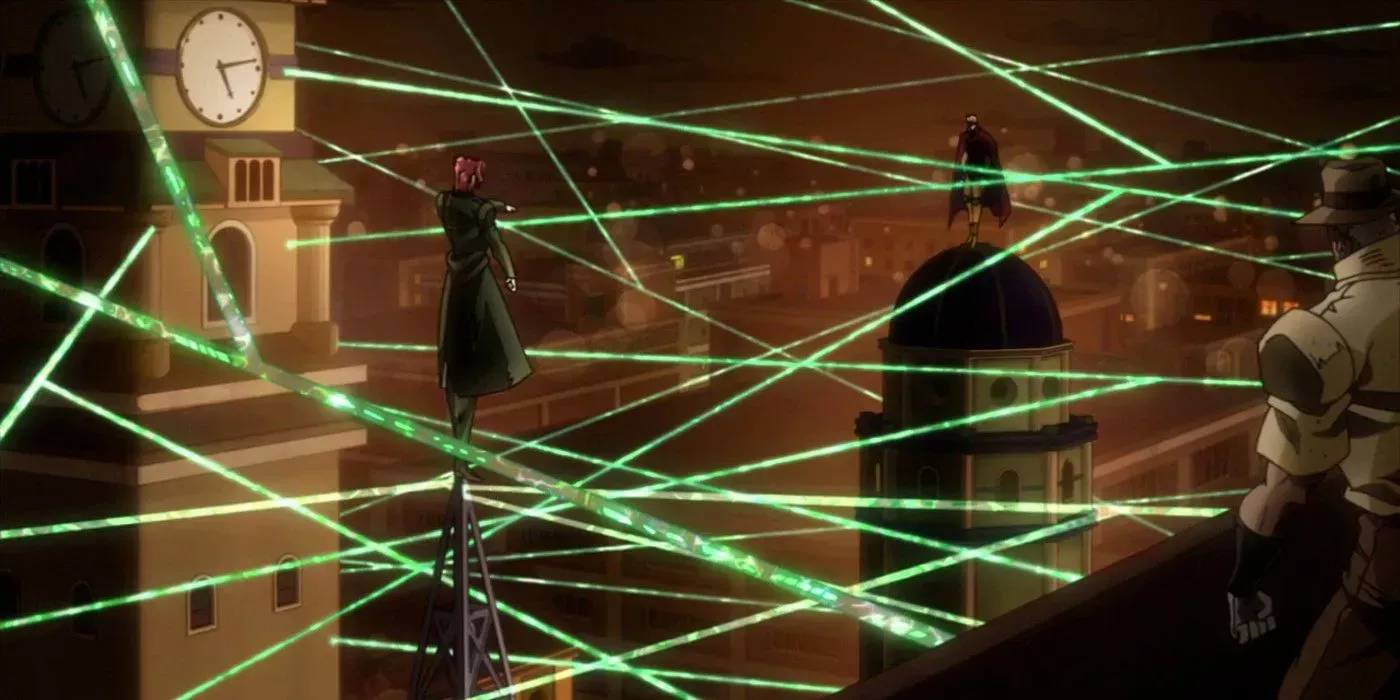 Kakyoin puede tomar realmente por sorpresa a sus enemigos cuando deshace el Hierophant Green en una serie de cuerdas, y probó esta técnica en la batalla final contra DIO en El Cairo. Si no fuera por el poder de congelación del tiempo de The World, Kakyoin habría tenido una gran ventaja.