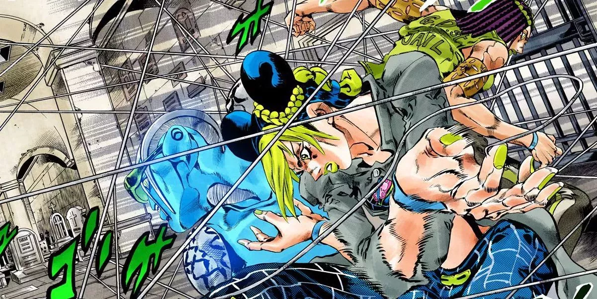 Araki ha hecho un trabajo fenomenal con los cientos de Stands que se han introducido en JoJo's Bizarre Adventure. Hay un nivel extra de detalle aplicado a los Stands que pertenecen a los diferentes miembros de la familia Joestar y Jolyne Cujoh tiene uno de los poderes más complejos. El Stand Libre de Piedra de Jolyne utiliza un poder de desenredo y una habilidad de tipo cuerda que puede ser bastante versátil tanto para la batalla como para la huida. Sin embargo, Stone Free es una experiencia muy abrasiva que hace que el cuerpo de Jolyne se deshaga con ella, lo que resulta traumático para alguien que no esté familiarizado con los Stands.