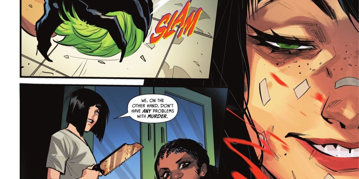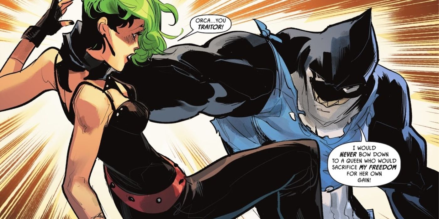 Resultó que sí lo hizo. Punchline fue lo suficientemente inteligente como para reconocer que si Orca no la mataba esta vez, la Reina de Espadas encontraría un lacayo que lo hiciera. Así que la única solución era tomar todo lo que su rival tenía aquí y ahora. Punchline debió apelar a la furia de Orca por haber sido encarcelada de nuevo a pesar de estar en libertad condicional. Utilizando esa ira, convenció a Orca para que se volviera contra la mujer que realmente la había encarcelado.
