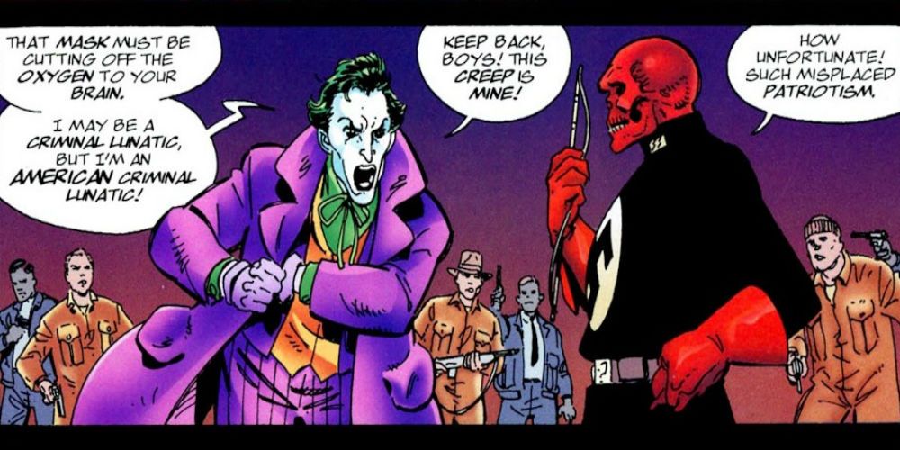 Contra el Joker, el mortal "polvo de la muerte" de la Calavera Roja sería inútil. Red Skull es un formidable combatiente mano a mano, pero el Joker tiene demasiados artilugios que estaría más que feliz de usar para derribar a Red Skull... ¡por América!