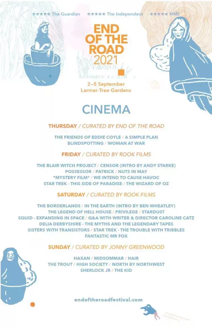 El director de Free Fire y High Rise, Ben Wheatley, y el director de Rook Films, Andy Starke, se encargarán de la programación del viernes y el sábado de End Of The Road, con la proyección de The Blair Witch Project, Censor y The Borderlands.