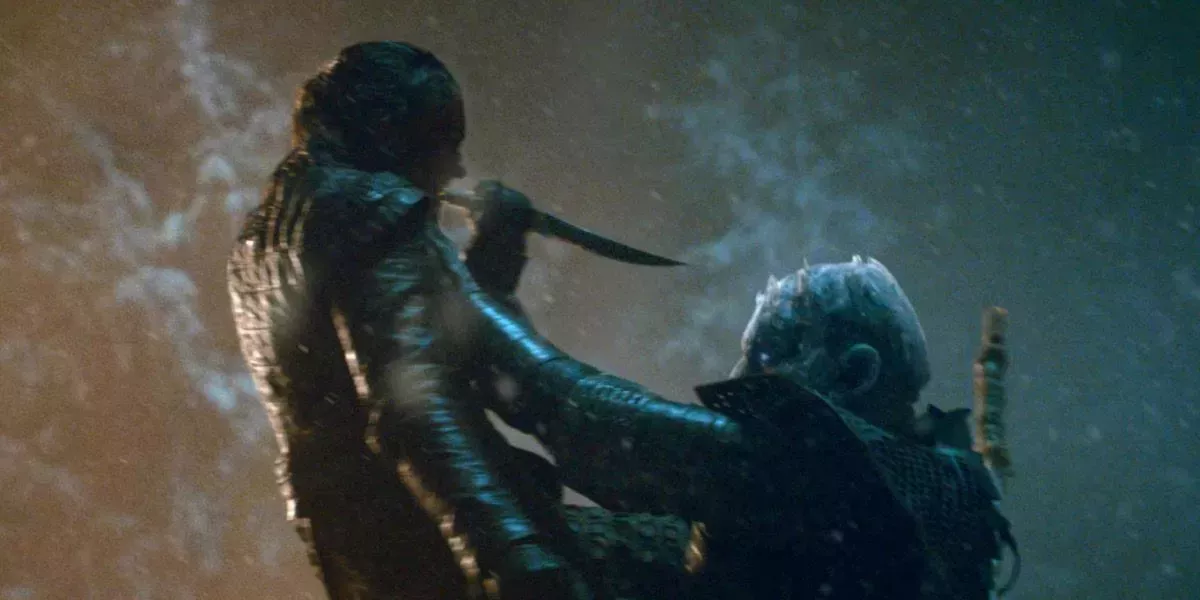 Todo se reduce a Arya Stark, cuyo incomparable modo de sigilo le permite acercarse lo suficiente al Rey de la Noche. A pesar de estar bloqueada, amaga con su daga en la otra mano, atravesando la "piel" del enemigo y destruyéndolo para siempre. La escena tarda en llegar a buen puerto, pero el resultado merece absolutamente la pena.