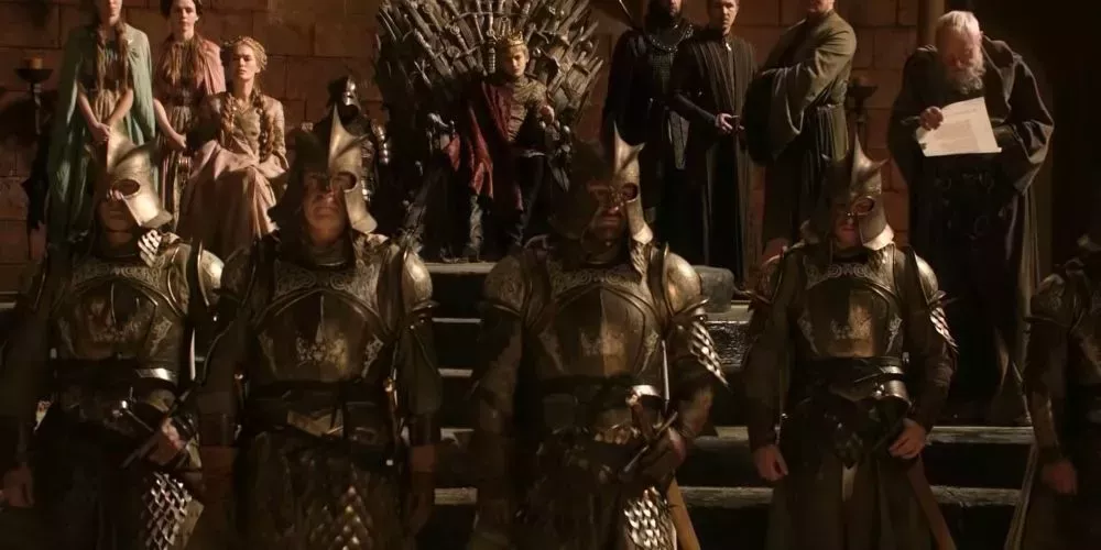 En la época del reinado de Joffrey, la Guardia Real ha caÃdo tanto en habilidad como en honor. Aunque intentan proteger a Joffrey, golpean alegremente a Sansa y probablemente habrÃan hecho lo mismo con Margaery o cualquier otra reina. Incluso en la cima de su poder, no se comportaron mejor. Dejaron que Aerys Targaryen agrediera a su esposa y se negaron a ayudarla.