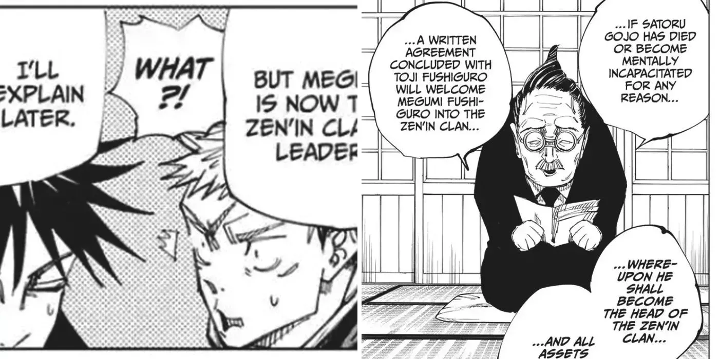 Antes del nacimiento de Megumi, las familias Zenin, Kamo y Gojo sólo trabajaban juntas cuando era absolutamente necesario y optaban por evitar a cualquier otra familia que poseyera poderosas técnicas malditas. Megumi, en cambio, ha aprendido a mostrar la gracia de sus compañeros y aliados, lo que ha llevado a la reunificación de las grandes casas de jujutsu.
