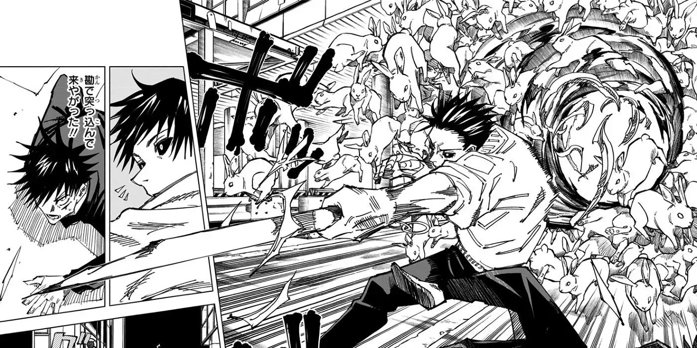 Megumi puede invocar decenas de conejos haciendo una marioneta de sombra de conejo con sus manos. Como se ve en el combate contra Jiro Awasaka, los conejos pululan por su enemigo, abrumándolo y cortándole el campo de visión.