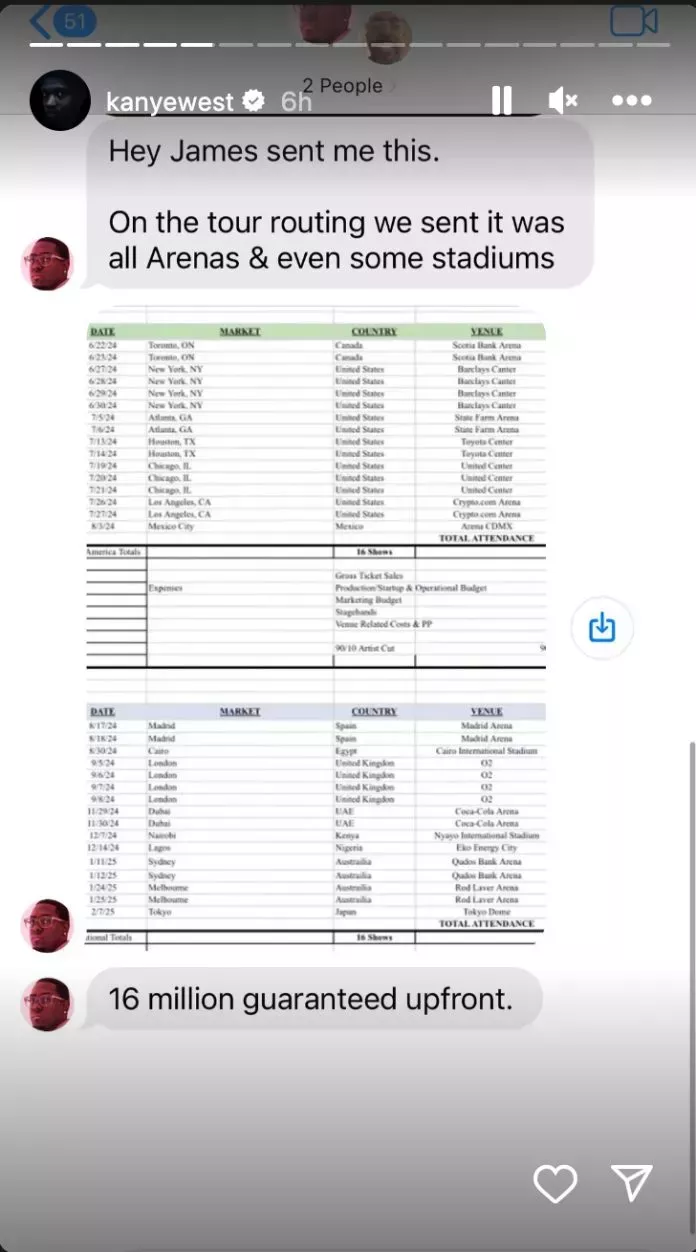 Desde que publicó las actualizaciones, West ha recibido varias ofertas para actuar en directo a través de mensajes de texto y ha compartido capturas de pantalla de los posibles lugares que podría visitar para promocionar el álbum.