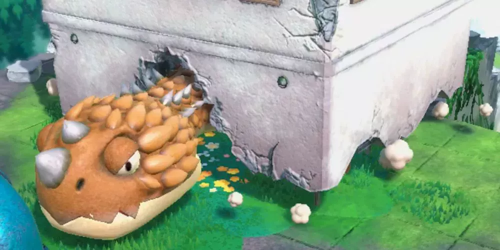 Kirby y la Tierra Olvidada enfrenta a Kirby a algunos de los mayores enemigos a los que se ha enfrentado, y Tortuilding es quizás el ejemplo más extravagante. Esta intimidante rareza es una tortuga gigante cuyo caparazón es un enorme edificio.