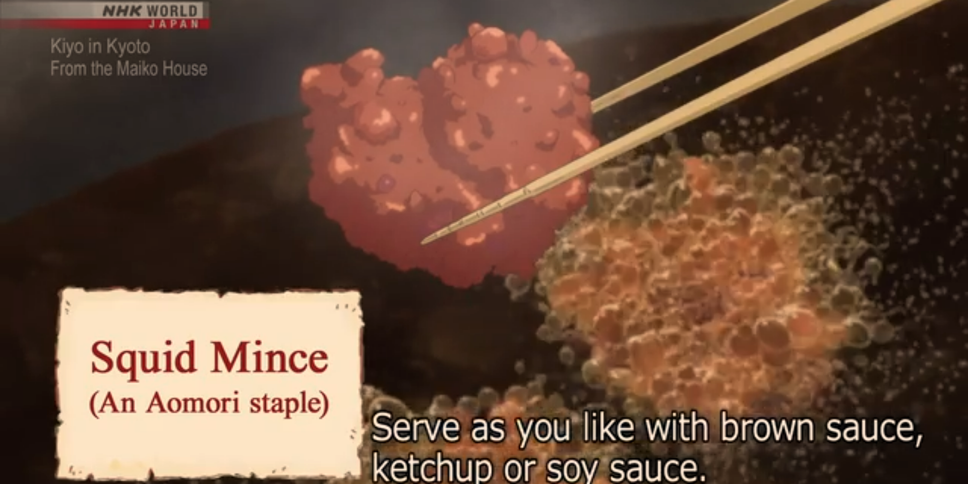 Kiyo prepara este plato para Sumire después de darse cuenta de que ésta suele estar demasiado ocupada para comer. El picadillo de calamar, sin embargo, se come fácilmente en un momento de apuro, lo que lo convierte en el plato perfecto para una maiko en movimiento.