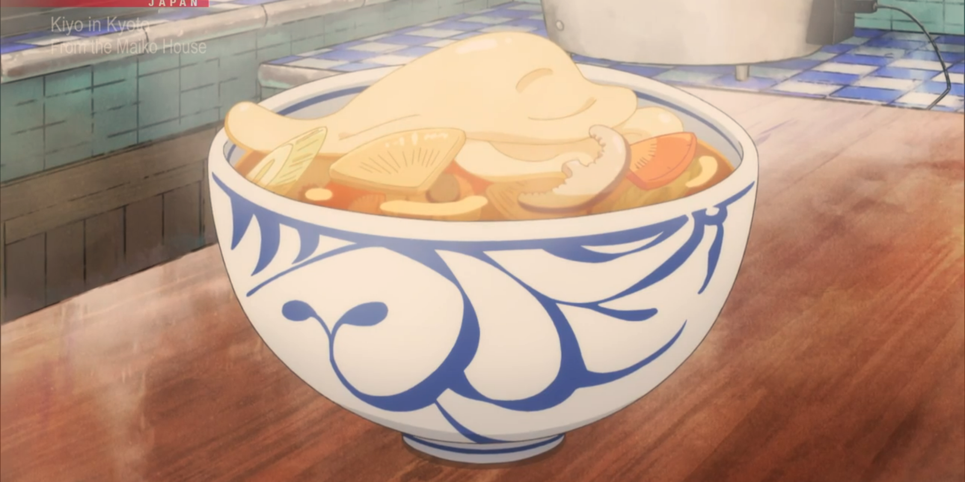 Kiyo y Sumire también recuerdan haber comido este plato junto con sus otros amigos en casa antes de unirse a la casa de las maiko. No sólo rememoran viejos recuerdos con este plato, sino que también crean otros nuevos al comerlo durante el debut de Sumire.