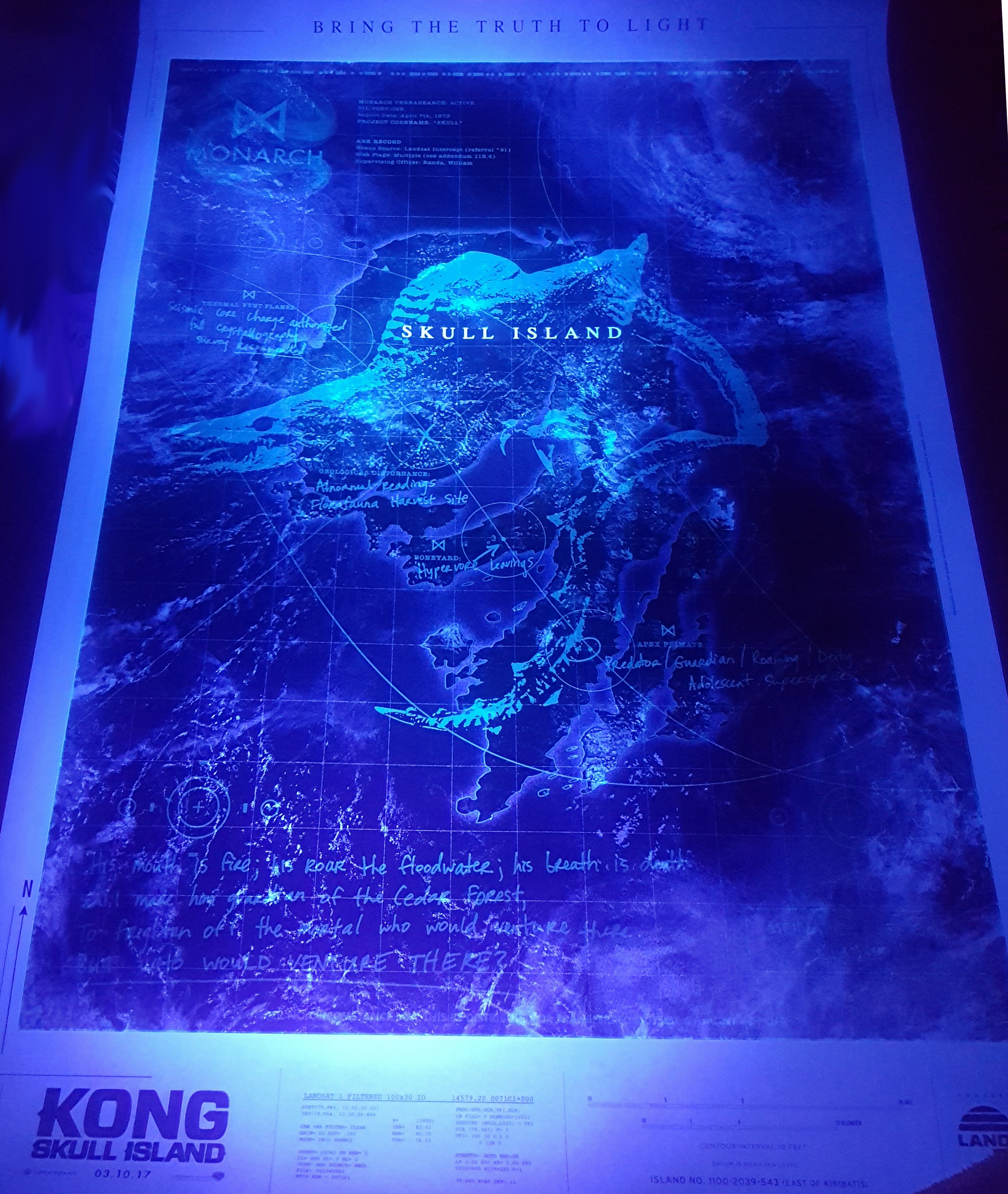 Al parecer, los dos estudios implicados en la producción de esta película hicieron llegar a distintos medios especializados el nuevo póster acompañado de una carta de MONARCH, la organización científica que se daba a conocer en ‘Godzilla’, estableciendo de este modo la conexión entre ambas producciones y disponiendo el terreno para el largometraje de 2020. El póster, que se presenta como un mapa de la isla misteriosa, está repleto de anotaciones que sólo se descubren con una luz especial, e incluso muestra la sombría presencia de un monstruo marino en sus costas.