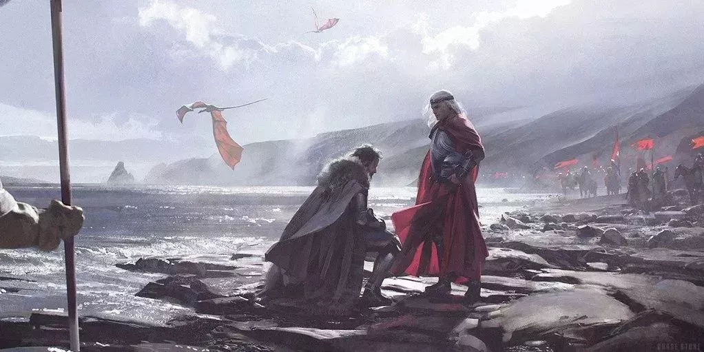 Daenerys Targaryen refuerza su derecho genético al Trono de Hierro con la ayuda de los Inmaculados, los Dothraki y tres dragones adultos, lo que la convierte en la persona más poderosa de Poniente, y quizás del mundo entero. Aunque Daenerys afirma que "ha nacido para gobernar los Siete Reinos", se preocupa más por establecer su autoridad que por salvaguardar a su pueblo.