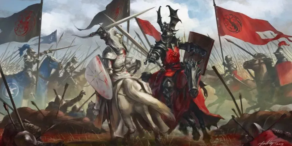 Cien años después de la llegada de la Casa Targaryen a Rocadragón, Aegon Targaryen se embarcó en una campaña masiva para conquistar Poniente, junto con sus hermanas-esposas, Rhaenys y Visenya. Armados con tres dragones adultos, estos tres Targaryen consiguieron sin esfuerzo múltiples victorias en el campo de batalla, obteniendo efectivamente el control de la mayor parte de Poniente.