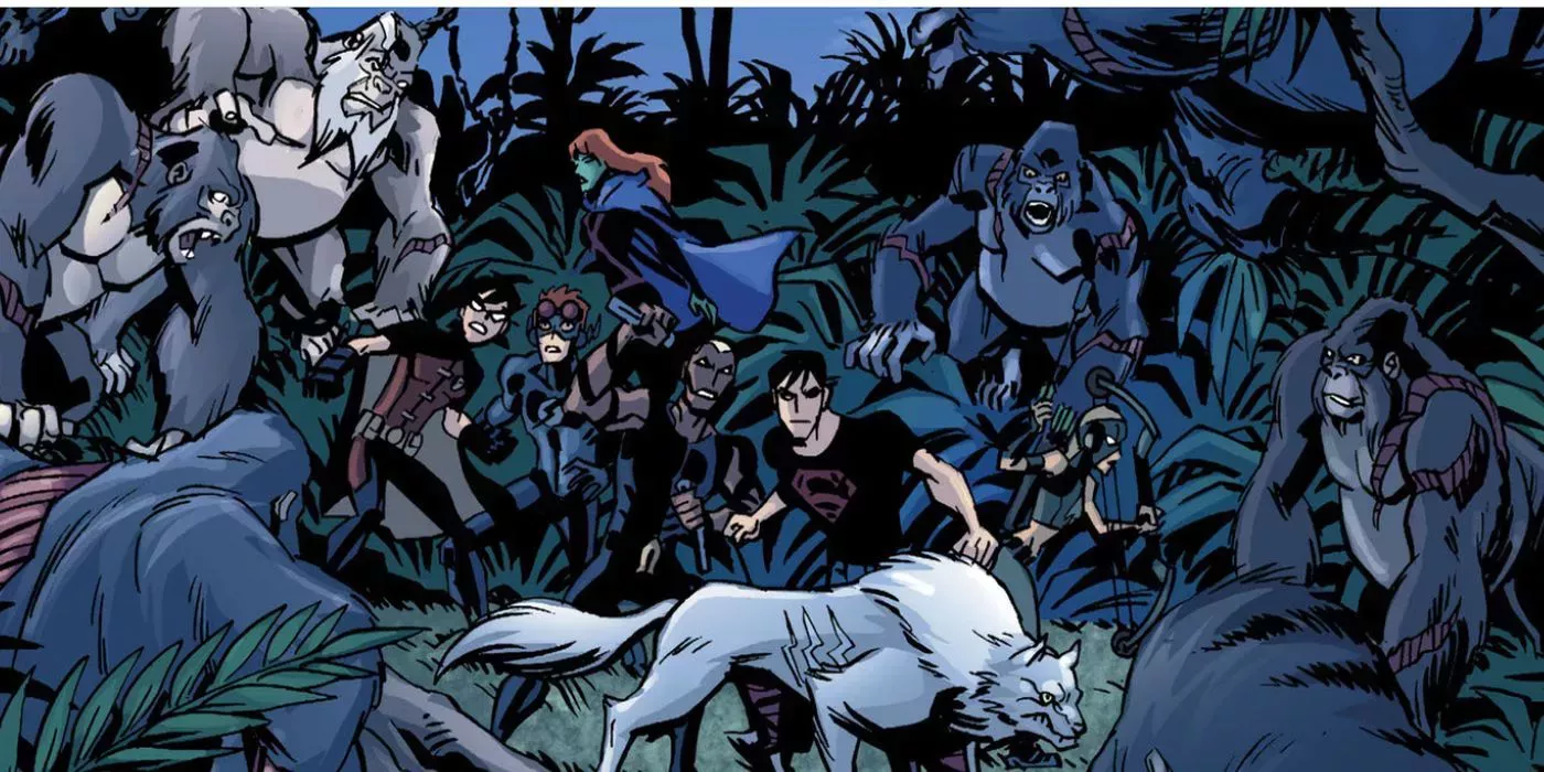 Entre 2011 y 2013, DC produjo un cómic basado en la primera y segunda temporada de Young Justice. En él se superaban las aventuras de la serie de animación. Uno de los argumentos presenta al equipo aventurándose en Gorilla City a instancias de Batman.