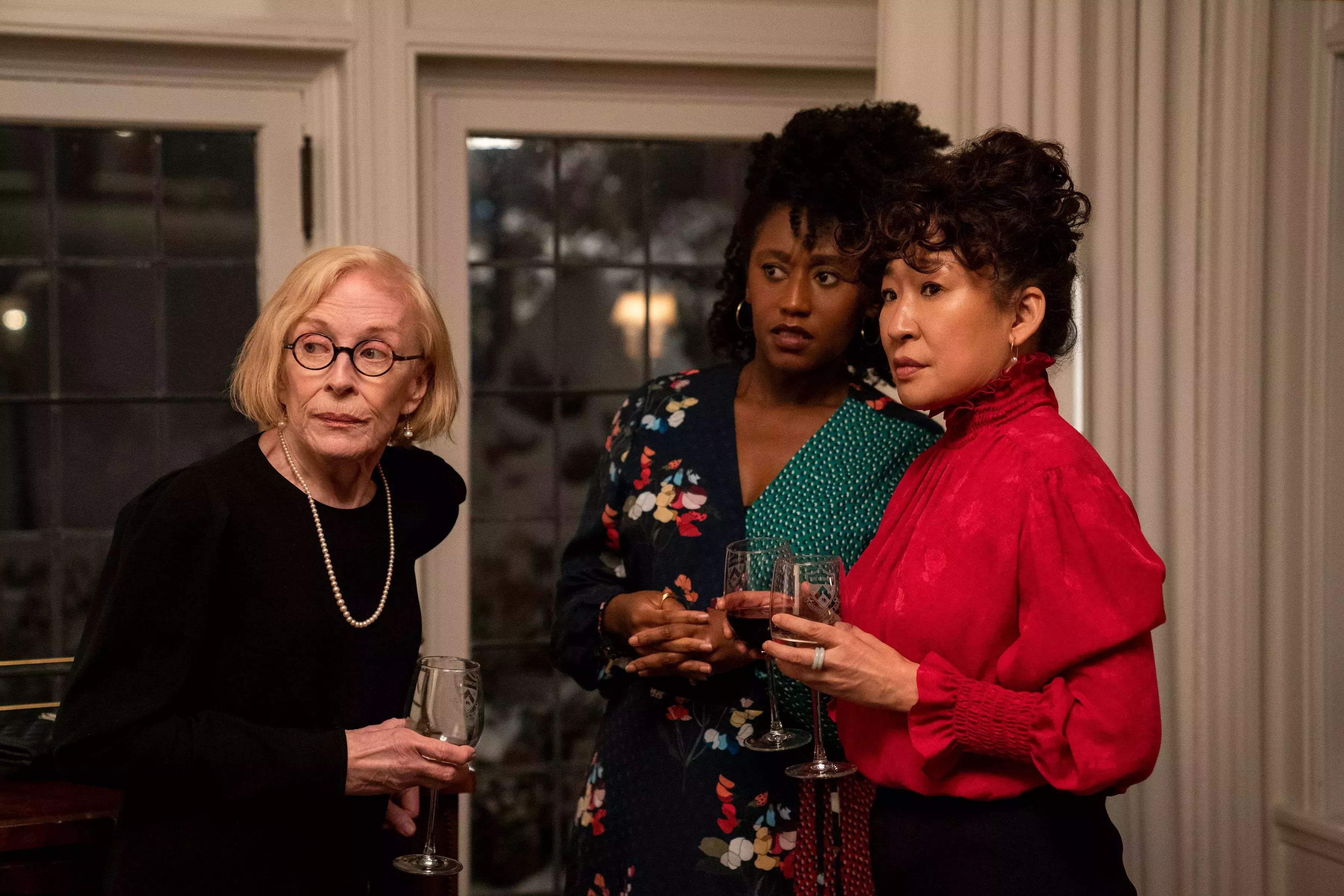 Oh es la más destacada de esas fuerzas, interpretando a Ji-Yoon Kim, la recién nombrada directora del departamento de inglés de la ficticia Universidad de Pembroke, un prototipo de universidad de artes liberales de Nueva Inglaterra. Ji-Yoon está encantada de haber sido nombrada la primera mujer presidenta del departamento, pero esa emoción dura lo que tarda en entrar en su nuevo despacho y en sentarse en una silla que probablemente sea tan antigua como la propia Pembroke, que inmediatamente se derrumba bajo ella.