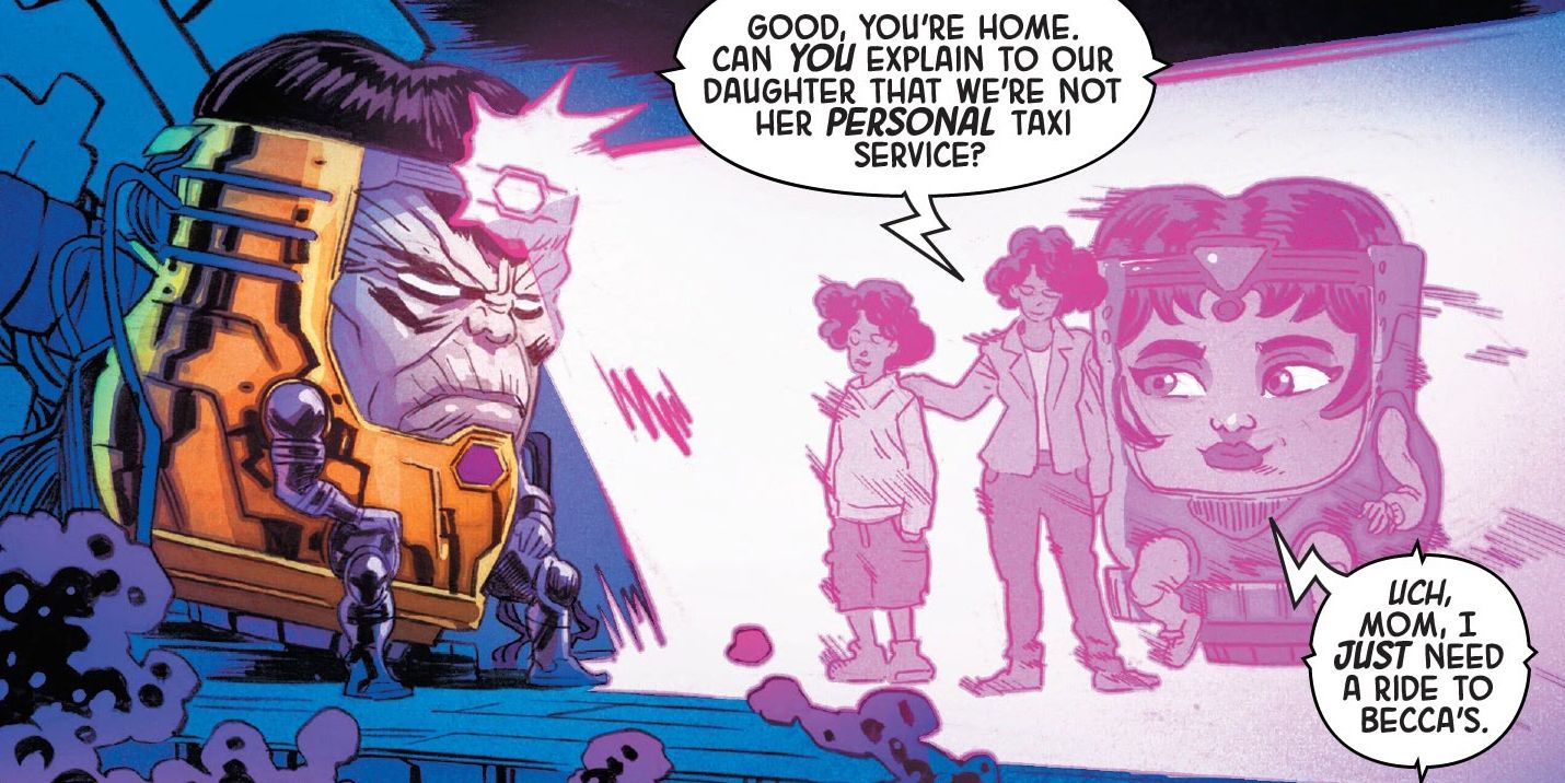 Ni siquiera el M.O.D.O.K. de los cómics puede escapar al espectro de su próxima serie. De alguna manera, M.O.D.O.K. está viendo visiones de una familia, incluyendo a su hija Melissa, y todo es muy similar a los trailers de su próximo debut en la pequeña pantalla en M.O.D.O.K.: Head Games #1.
