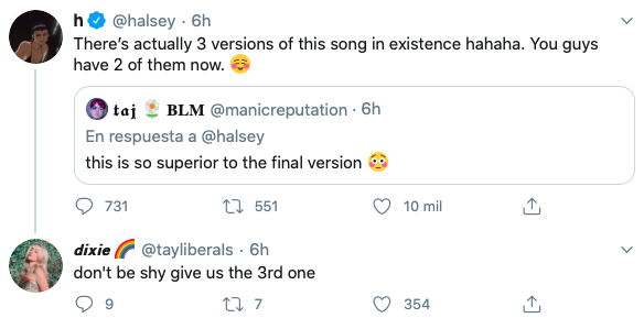 Luego hizo un intento de quitarse de encima la situación y su responsabilidad de filtrar la demostración. "Me van a meter en problemas ahora, cállate", escribió. "Si alguna vez filtré una versión de demostración de una canción, no la filtré porque lo hice. No, no lo hice.
