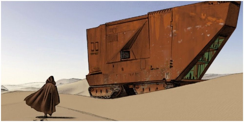 Mientras volaba su saltamontes, Luke lo choca y es castigado por su tío. Sabiendo que Luke no podía meterse en problemas en casa, Obi-Wan aceptó un trabajo para defender un arenero de los Tusken Raiders. Mientras meditaban por la noche, los Tusken Raiders atacaron el rastrillo de arena.