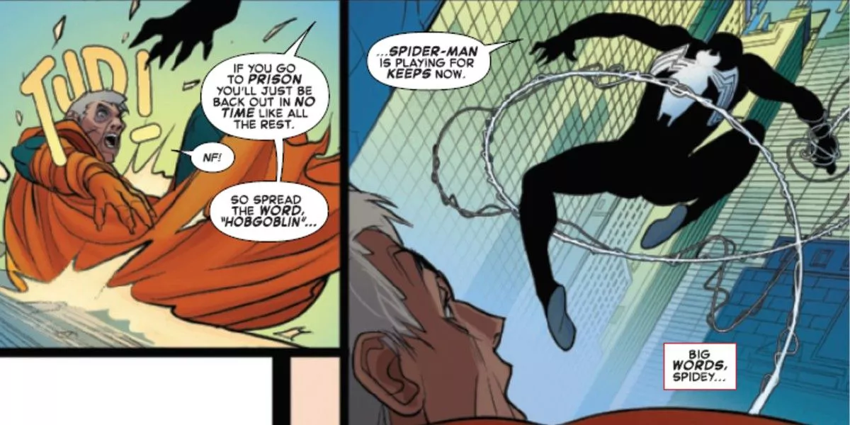 Si no fuera porque el simbionte impide que Peter vuelva a entrar en el incendio, la tÃa May podrÃa haber sobrevivido. Y si Peter hubiera estado dispuesto a despojarse del traje del simbionte cuando Reed Richards se lo pidió, las cosas podrÃan no haber avanzado tanto. En marcado contraste con su reciente giro heroico en El Rey de Negro, el simbionte Venom está dispuesto a engañar a Peter, haciendo recaer el impulso de la muerte de May en Hobgoblin, con tal de salvarse a sà mismo.