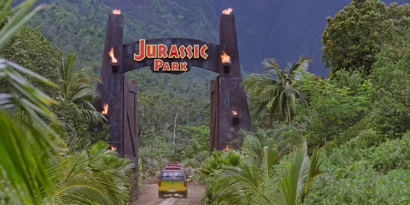 La icónica puerta de Jurassic Park es un guiño a otra película, y crea un chiste meta