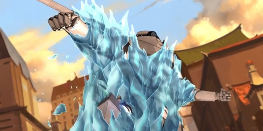 10 Korra encajando el Mecha en el hieloEs fácil olvidar que Korra es un maestro agua nativo ya que raramente lo usa en la lucha, prefiriendo en cambio la tierra y el fuego control ya que están más en línea con su personalidad y espiritualidad. Cuando se trataba del mecha de Kuvira, Korra tenía que hacer todo lo posible. Usó sus increíbles habilidades de agua-control para encerrar a la mayoría de los mechas dentro de un bloque de hielo gigante lo suficiente para que Hiroshi hiciera un agujero en una de las piernas, permitiendo al Equipo Avatar acceder a su interior.
