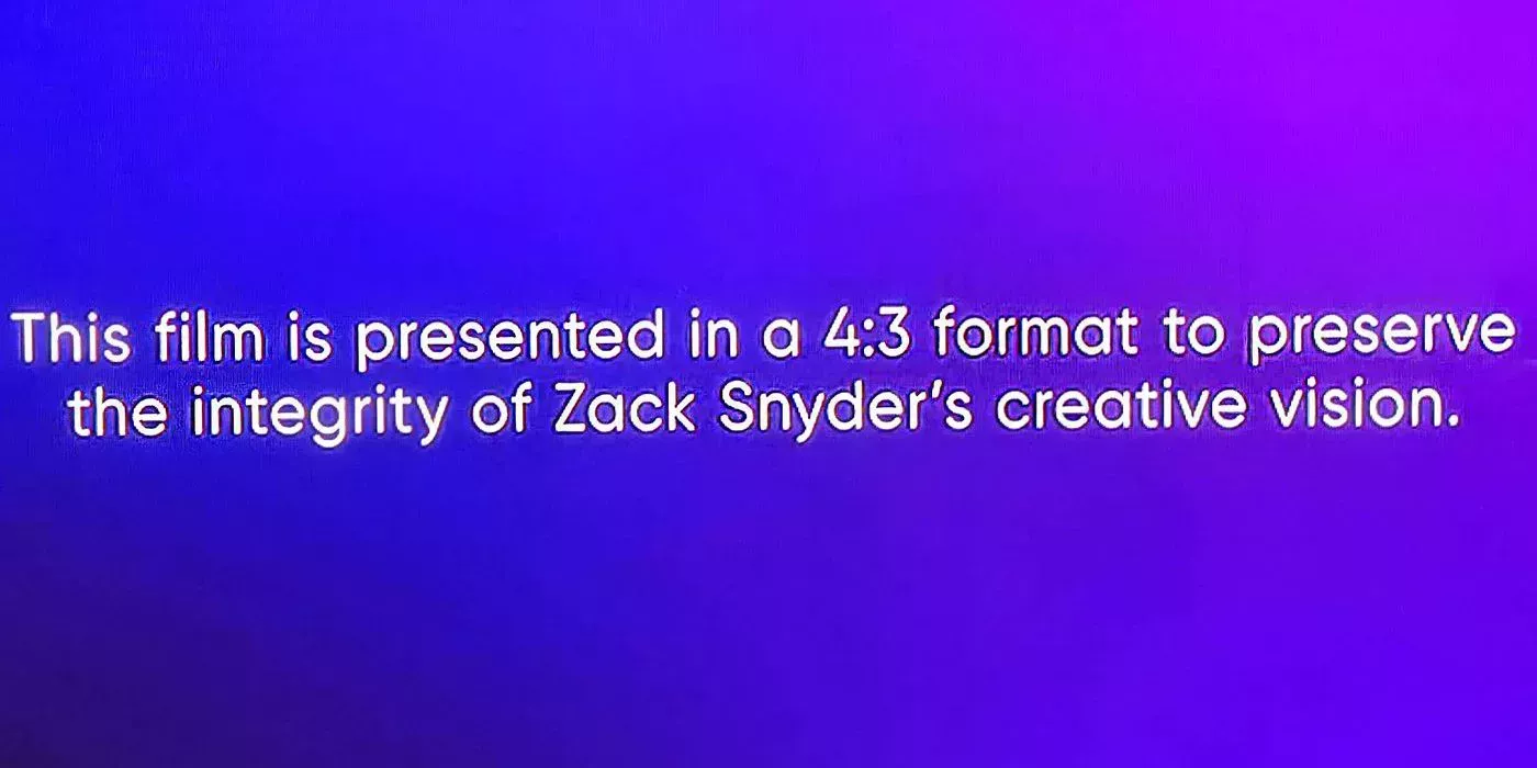 Una de las primeras cosas que los fans tuvieron que aceptar al ver la Liga de la Justicia de Zack Snyder fue el extraño formato de la pantalla, al que se hace referencia mediante una tarjeta de título al principio de la película para preparar a los espectadores para la visión final de Zack Snyder de la película.