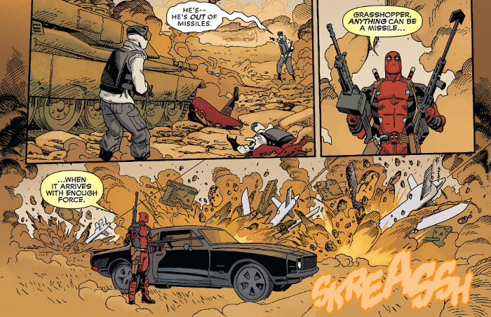 A parla todo. Colisión entre el universo Marvel y el universo Ultimate al más puro estilo de la Crisis en Tierras Infinitas o 'Melancolía' de Lars Von Trier, Deadpool y su familia barridos por la colisión resultante, y Wade concluyendo con unas palabras que no podrían ser más suyas “Si tengo que morir, por lo menos me los llevaré a todos por delante”.