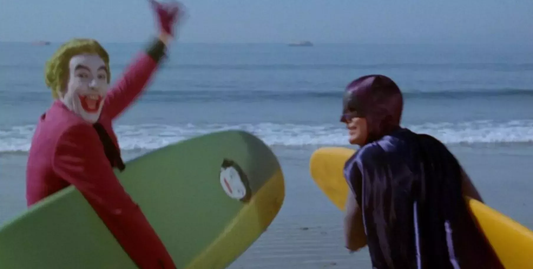En los créditos finales, hay varias escenas del nuevo grupo de amigos de Batman y el Joker. En esta viñeta aparece el grupo con tablas de surf celebrando una fiesta en la playa. Esta es otra divertida referencia a la serie de televisión de Batman de los años 60. En concreto, un episodio de la tercera temporada.