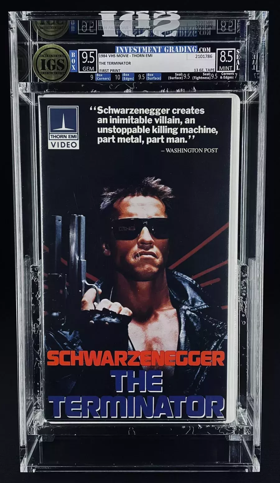 Una primera copia en VHS de la película original de Terminator se ha subastado por 32.500 dólares (23.913 libras).
