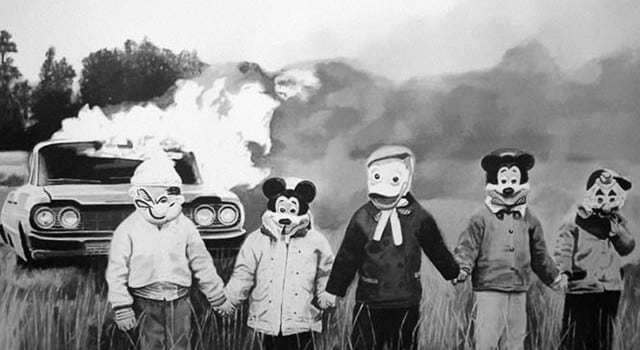 El coche en llamas en el fondo es un poco irritante. ¿Crees que esto es algún tipo de broma de Halloween?