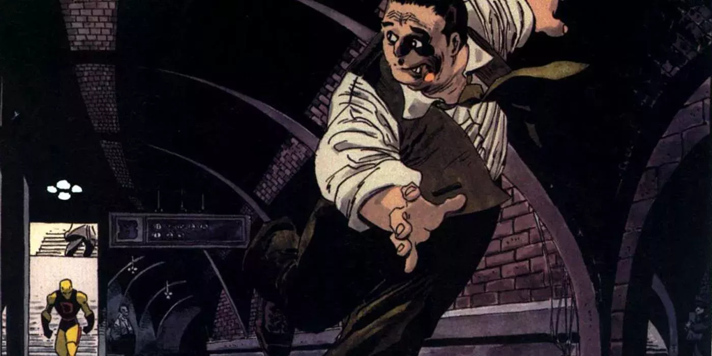 En Daredevil: The Man Without Fear #4 de Frank Miller, John Romita Jr, Al Williamson, Christie Scheele y Joe Rosen, Matt encuentra a dos hombres de Kingpin desarmados y vigilando un almacén lleno de niños. Nunca se explica por qué Kingpin tiene a los niños, pero Daredevil inmediatamente asume lo peor.