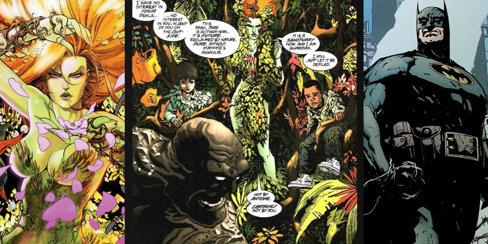 Durante gran parte de Tierra de Nadie, todo el mundo tiene demasiado miedo de entrar en Robinson Park, pero con el tiempo se revela que Ivy ha convertido el parque en un refugio seguro para los huérfanos de Gotham. Incluso ayuda a Batman ofreciéndole sus servicios para cultivar productos para la ciudad en dificultades.