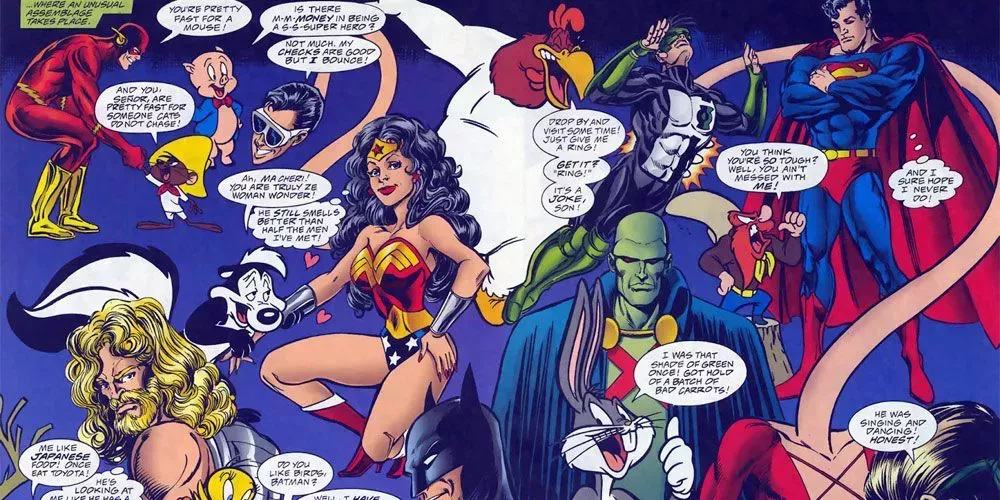 RELACIONADO: 10 cortos de los Looney Tunes que siguen vigentes Los universos mezclaron a varios de los Looney Tunes imitando a la JLA. La fusión se detuvo cuando Mxyzptlk y los Do-do se enfrentaron entre sí. Los dos grupos tomaron caminos distintos después de unirse contra el Juguetero y la historia terminó con Perry White acabando con una caja que contenía a la rana Michigan J. cantando y bailando.