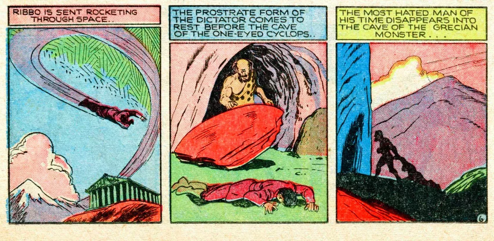 Desde lo más alto, el Tío Sam, un hombre ficticio del mito americano, vuela al campo de batalla para aullar a los nazis. En otra historia, Merlín, el mago medio demonio de la leyenda artúrica, viste un traje de negocios bajo su capa en la era moderna y alimenta a los dictadores con cíclopes y serpientes marinas. Por último, el gigante Paul Bunyan, otro mito americano, se une al esfuerzo bélico.