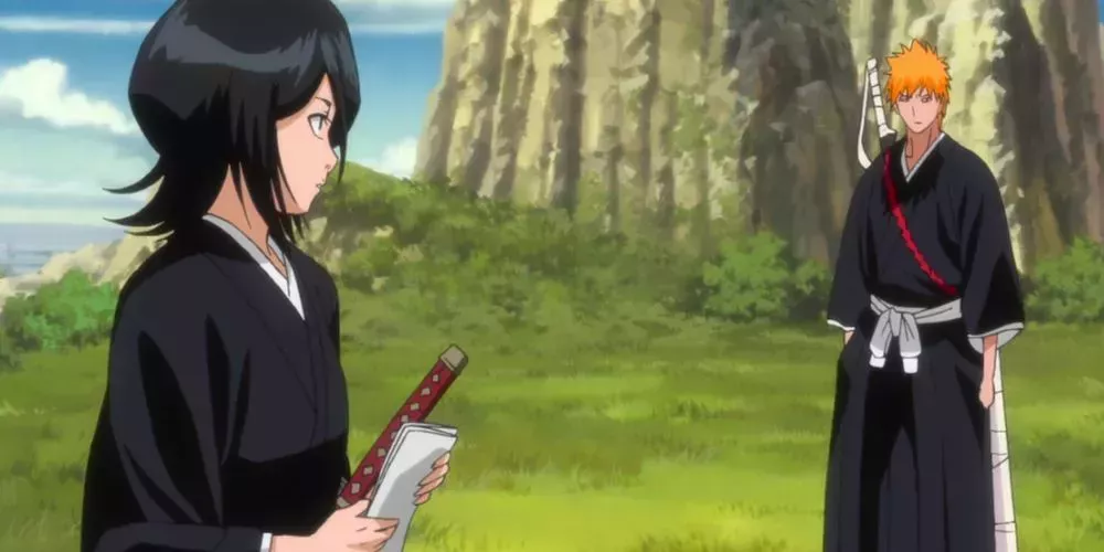 Ichigo y Rukia (o IchiRuki) fueron la pareja romántica estrella de Bleach ( ) y una de las más populares de la comunidad del anime. Los primeros episodios de Bleach mostraban su creciente amor. Esto culminó en su lacrimógena despedida tras la derrota de Aizen y en la película Fade to Black. Sin embargo, nada de esto ocurrió en el manga.