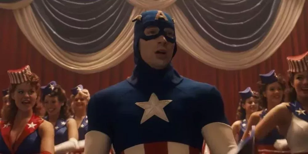 En Capitán América: El Primer Vengador, la primera acción de Steve Rogers tras recibir el suero del supersoldado es perseguir un coche a pie, dar alcance a un submarino y capturar a un espía nazi mientras le disparan. Inmediatamente después, el coronel Phillips, encargado de convertir experimentos científicos en soldados, le dice al Capi que necesita soldados, no experimentos científicos, y lo envía a una gira de la USO.
