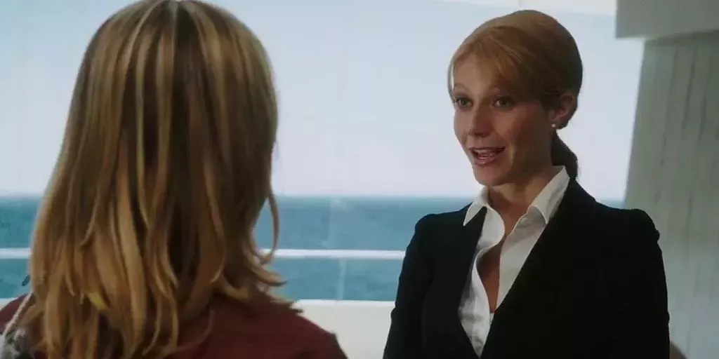En su escena introductoria en Iron Man, Pepper Pots llega a casa de Tony, sorprendiendo a su invitada, una reportera a la que sedujo la noche anterior. Pepper está allí para dejar la ropa de la tintorería y, en un momento de crueldad aislada, "sacar la basura".
