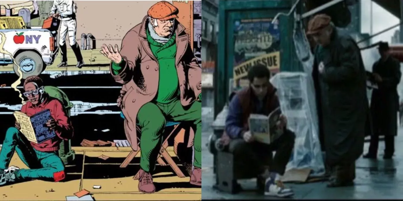 Bernard y su quiosco son clave en la serie original. Durante el mortífero ataque de Ozymandias a Nueva York, el cómic muestra a cada uno de los civiles a los que el público ha llegado a querer reunidos en torno al quiosco mientras son asesinados. La película intenta un momento similar, pero sin la preparación, parece trillado y sin sentido.
