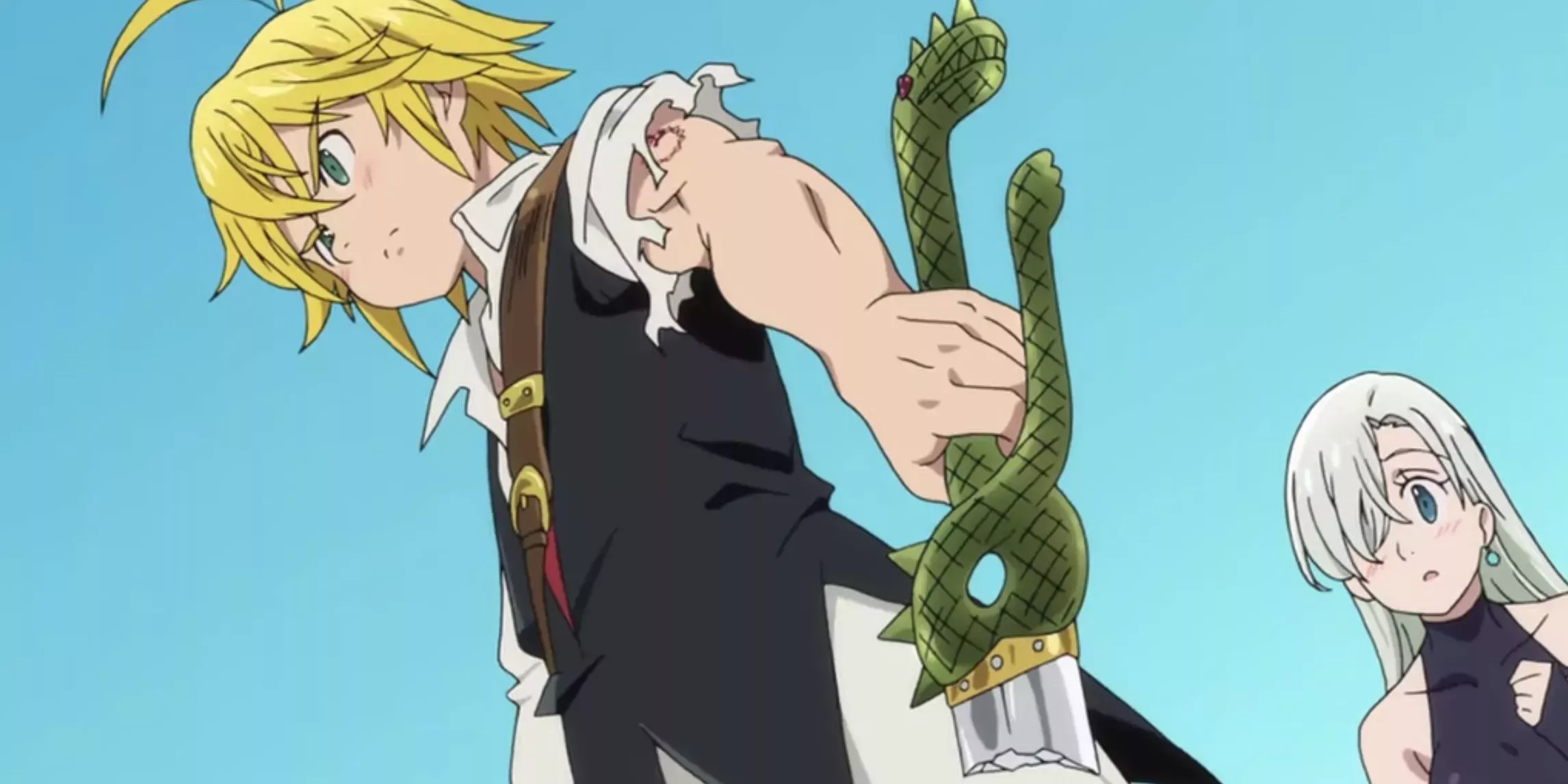Incluso sin cuchilla, cuando la maneja Meliodas, el Mango del Dragón es capaz de cortar a los oponentes más intimidantes. Es una poderosa hoja con un propósito diabólico aún mayor.