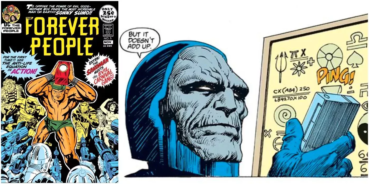 Si hay un MacGuffin en la mitología del Cuarto Mundo, es la presa de Darkseid: la Ecuación Antivida. La Ecuación destruye el libre albedrío a través de su prueba matemática de que la vida carece de sentido; el simple hecho de escuchar la ecuación obligará a la forma de vida sensible a abandonar la esperanza y someterse a Darkseid, porque Darkseid lo es. Kirby era un veterano de la Segunda Guerra Mundial, y la Ecuación Antivida se inspiró sin duda en el totalitarismo que presenció durante su servicio.