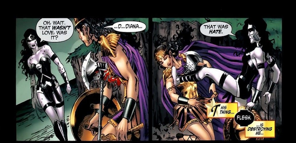 Por desgracia, Donna Troy se transformó durante el evento al ser mordida por su propio hijo, muerto hace años en un trágico accidente automovilístico. Aunque su transformación fue más lenta, cayó presa de los poderes de Nekron como todos los demás. Durante esta era, Donna fue impulsada por los Titanes del Mito, lo que le dio sus habilidades idénticas a las de la Mujer Maravilla. Tenía mucha fuerza y velocidad, vuelo y años de experiencia en combate. Pero lo que empeoró las cosas fue que recientemente había sido impulsada por los Titanes, y se le había dado la habilidad de manipular la energía y dominar los poderes de la oscuridad y el frío.